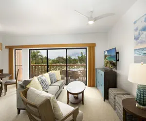 This inviting condo is conveniently near one of the two resort pools that are yours to enjoy and is perfect for 4-6 guests with comfortable furnishings, beach amenities, and a large tree-top level lanai surrounded by plumeria trees.