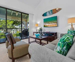The spacious and inviting living area is a great place to gather after a day of enjoying all Maui has to offer. Eat in! Kitchen is fully equipped with all any home chef would need to whip up a quick bite or a gourmet meal. The dining area allows seating for four.