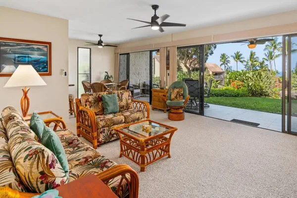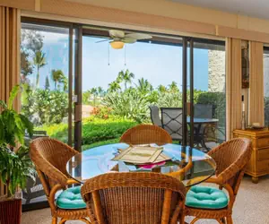 Keauhou Punahele #B108 is an excellent location for relaxation, close to Keauhou Bay and the shopping center. Enjoy this two-bedroom, two-bathroom, ground-floor unit. Relax on the large lanai with a barbecue grill, outdoor seating, and garden views.