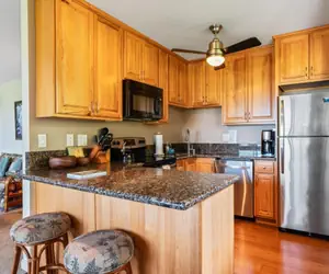 The kitchen is close to the dining area and has bar seating for you to keep the conversation going while cooking. The kitchen is fully stocked with all the gadgets needed and upgraded appliances.