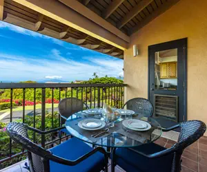 This exquisite, second floor, 1bedroom, bathroom retreat is the perfect Hawaiian getaway. With gorgeous views of the ocean and the well manicured tropical gardens from your private lanai. This condo is tastefully furnished with vaulted ceilings in the living room and dining room, central AC to keep cool year round, and flat screen TV.
