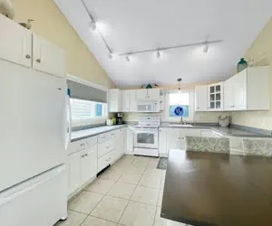 The unit features two bright bedrooms, including a master with a private 3/4 bath and its own private deck, and a second bedroom with two twin beds and a TV. The sunny living room has a pull-out sofa, TV, and cathedral ceilings, creating an open, airy space. The kitchen is sleek and contemporary, equipped with a dishwasher and all the essentials you need to prepare meals while enjoying incredible ocean views. A washer and dryer are included for your convenience. Air conditioning, ceiling fans, and two bathrooms ensure comfort throughout your stay.
