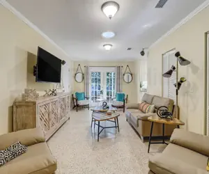 With three beautifully appointed bedrooms, including a luxurious king suite, a cozy queen room with a sleep sofa, and a charming twin room, this property comfortably accommodates up to nine guests. The two bathrooms provide ample space for everyone, ensuring convenience during your stay.