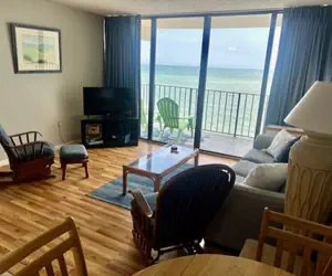 This condo is located in the family friendly Garden City Beach Area just south of Myrtle Beach. It is a two bedroom condo in the 16 story high rise Royal Garden Resort. The resort has a large outdoor and indoor swimming pool and a hot tub. Linens are included in the reservation.