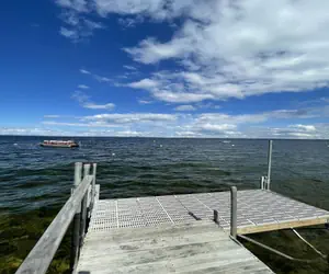 Waterfront/Lot Description: Shorefront property with camp road between the frontage and the house. Rocky underfoot. Swimming off the dock. Short walk to beautiful Association Beach. Nice lawn behind the house. Parking space for a maximum of 3 cars and 1 boat trailer. Dock/Suitable for tie-up: yes, suitable for short term tie up only (loading and unloading). The lake can get rough, with this in mind, tenants MUST NEVER leave their boat unattended. When not using it, boat MUST be on the mooring.