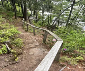 Waterfront/Lot Description: Level lot around cottage in wooded setting. An extensive path leads down to a pebbly beach. Has a swim float but NO dock or mooring.