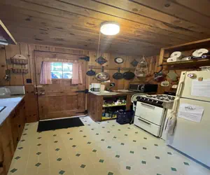 OCCUPANCY LIMIT 6 - SEBAGO LAKE SHOREFRONT. Maine Log Cabin located on the west shore of Sebago Lake. Pine paneled living room with fireplace to take off the chill on cool evenings. A wonderful screen porch expands the summer living space and provides a great spot to take in the pretty view. Nicely furnished. Slightly sloping grassy lot. Safe entry into the water, though not a sandy beach. Internet access. DOG CONSIDERED WITH $125 PET FEE