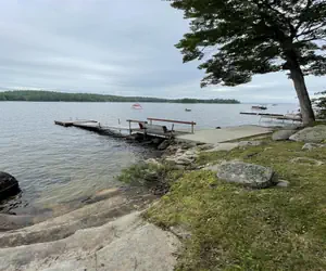 Waterfront/Lot Description: Rocky in spots but has steps down to sheltered shallow area w/sandy bottom. Easterly exposure. Dock/Suitable for tie-up: yes, tie up for Canoes, Kayaks, or Row Boats only. Mooring: no.