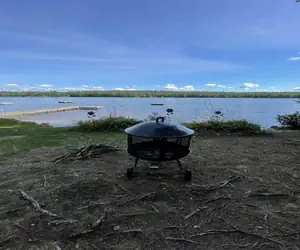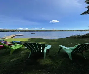 Waterfront /Lot Description: Lot is gently sloping with a nice level grassy yard on the lake side. Sandy bottom frontage. Firepit near the shore for evening campfires. Dock: Yes, suitable for tie up.