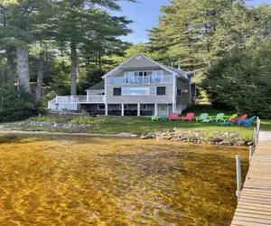 WOODS POND SHOREFRONT. Lovely lakefront contemporary with all the conveniences of home. Absolutely NO PETS in or on the property due to serious owner allergies. Well equipped and nicely appointed open concept living for vacation gathering.