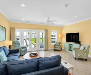 • This spacious 3BD, 2.5BA Villa is the perfect blend of comfort and coastal charm. Each bedroom features its own television, and the living room offers a large flat-screen TV, ideal for relaxing after a day on the water.