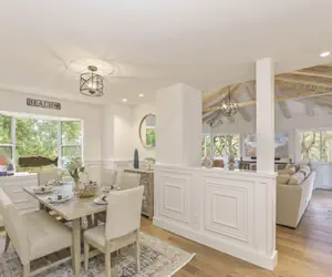 The immaculate kitchen is fully equipped to craft in-home meals. The adjoining dining area seats 6. Gather around the table to make memories over shared meals and games.