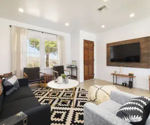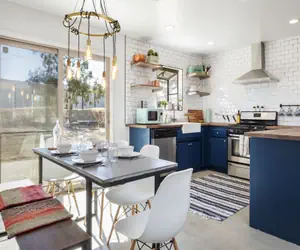 Cosmic Rabbit is your desert home away from home. With 3 bedrooms, 2 bathrooms, a full kitchen, living area and amazing outdoor living - you'll feel like you're at your own private desert retreat. There are 3 bedrooms and 2 bathrooms with comfortable sleeping arrangements for 4 adults and 2 kids. Bedroom 1 has a king bed with attached bath, bedroom 2 has a queen bed and a desk area, bedroom 3 has two twin beds. The third room also has a fun chalkboard wall for you kids creative minds! Make the most of your relaxing desert getaway with our outdoor amenities including a hot tub, a stargazing platform, kids' area and a grill with outdoor dining area. During the summer months, enjoy our cowboy tub for a quick cool off! (Cowboy tub NOT heated)
