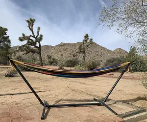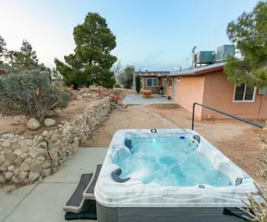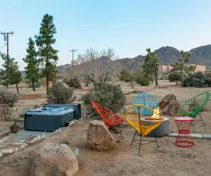 Rocky Ridge Retreat is a cozy, colorful place to call home during your Joshua Tree getaway. Minutes walk from fantastic desert hikes and minutes drive from Downtown Joshua Tree and the National Park entrance. Enjoy a soak in the hot tub after a long day of exploring and a great view of the beautiful starry skies from the backyard fire.
