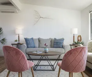 There are 3 bedrooms and 2 bathrooms with comfortable sleeping arrangements for 6 people; a queen bed in two of the bedrooms and a trundle for the kiddos (or two adults that want to have their own twin bed). Each of the rooms has their own desk for work or creative endeavors.