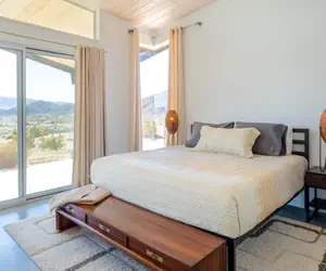 This is the mid-century desert oasis you have been looking for. Our beautiful home is located minutes from the Joshua Tree National Park entrance giving you all of the comforts of home while being surrounded by boulders in the incredible Joshua Tree hills.