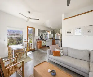 The Jensen is a 2 bedroom 2 half bath 750 sq ft property—great for friends, couples or a small family. The home has one king bed and the second bedroom has one queen bed. The bathroom is divided into two separate areas (a bathing room, equipped with shower and tub and a second room with the toilet and hard sink) - created in such a way that you'll only find in the desert.