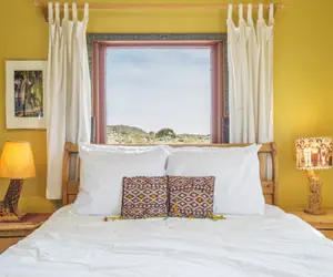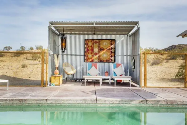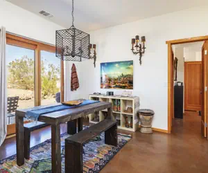 Joshua Tree National Park entrance is 15 minutes away. In the artists' community of Joshua Tree, you can also explore galleries, shops, and grab a bite to eat.