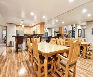 The condominium has a well-equipped kitchen and a stacked washer/dryer. The dining table seats 8 with the extra leaf (please request if desired), and the bar can seat three. The primary bedroom has a king-sized bed, jetted tub and separate shower. The second bedroom has a queen-sized bed. The sleeping loft has 2 sets of bunk beds, one with a queen mattress on the bottom half.