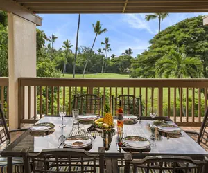 The spacious and covered lanai allows barbecuing while looking over the lush greenery and golf course.