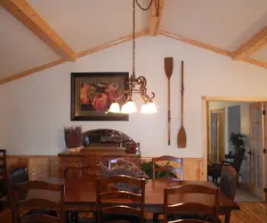 Our largest three bedroom, three bath Harbor North cottage, one of our signature premiere log sided cottages. Beautifully furnished in an eclectic blend of antiques and comfortable, contemporary pieces, our Harbor North cottages all feature beautiful tile floors in the bathrooms and hardwood floors in the great room. Enlarged floor plan in living area has almost 200 square feet more than our other cottages.