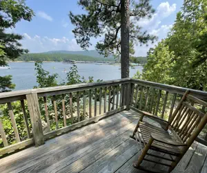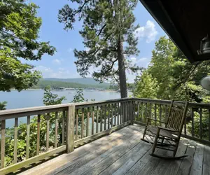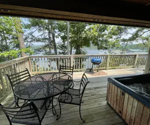 There is a hot tub on the deck, which has a beautiful view of the lake � our very best view yet!