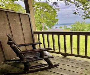 The living room has a sleeper sofa, cozy dining area, a TV, small microwave, personal sized refrigerator and a four cup coffee maker. Daily coffee, hot cocoa and popcorn provided in the unit.