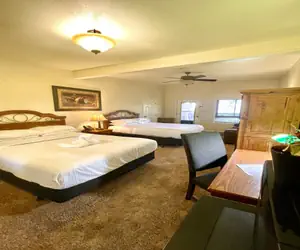 Our Lodge Queen Guest Room has two queen beds and a queen sleeper sofa.