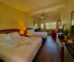 Our Lodge Queen Guest Room has two queen beds and a queen sleeper sofa.