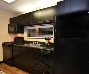 Stoneridge C15A has zero steps leading in and is one level, making it a great choice for guests with mobility concerns. This standard-rated unit offers internet access and sleeps eight. The living room features a flat-screen TV/DVD, a queen sleeper sofa, and an electric fireplace (available for use from November 15 to April 1). There’s a fully functional kitchen, and the dining room seats six, along with an extra dorm-size refrigerator and microwave.