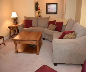 This location is just a short complimentary shuttle ride to the slopes and main resort and is within walking distance to the Highlands Golf Course. The small viewing deck provides a grand view of Seven Springs Mountain Resort's beautiful wooded landscape. Gas grill use is prohibited.