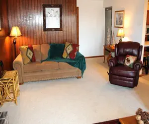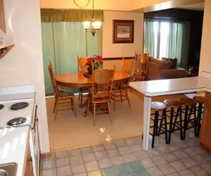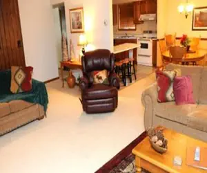 Mountain Villas 9A4 has twenty-one steps leading in, is one level, and is within walking distance of the Highlands Golf Course. This pet-friendly unit offers internet access, has a standard rating, and sleeps ten. The living room features a flat-screen TV and two queen sleeper sofas (please note the fireplace is not available for guest use).