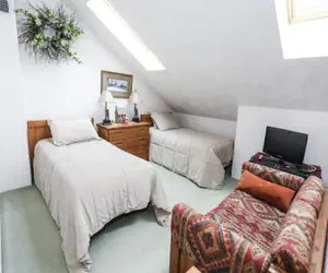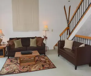 Sunridge P6 has five steps in, is multi-level, offers internet access, and is not pet-friendly. This unit is rated deluxe and sleeps six. Fourteen steps up from the entry foyer, you'll find the living room featuring a flat-screen TV, a queen sleep sofa, and a gas fireplace. There is a fully functional kitchen, and the dining table seats six. The bedroom offers a queen bed, a flat-screen TV, and a full bath. Upstairs, you'll find the loft bedroom with two single beds, a TV, and a full bath. The small viewing deck provides a grand view of Seven Springs Mountain Resort's beautiful wooded landscape. There is no gas grill available for guest use. This unit is ski-in/ski-out with on-trail access, weather permitting.