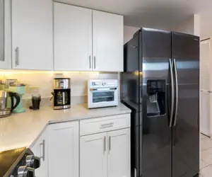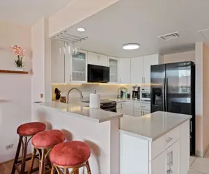 White Sands Village is a staple on Ali'i Drive and across from Magic Sands beach. The layout of this unit makes for an open floor plan of the living area. The kitchen has all the gadgets any at-home chef needs. The living area has a sleeper sofa and a great atmosphere to relax and unwind. Enjoy the central air conditioning and smart television as well. There is a nice lanai where you can take in the views of the ocean or mountain and listen to the world wake up.