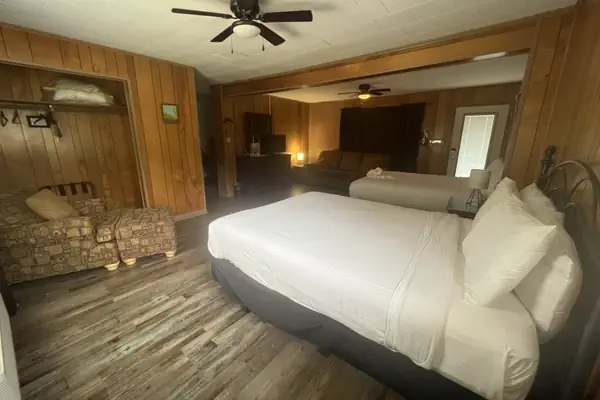 Our Suite at the Joplin Inn has two queen beds and a sleeper sofa.