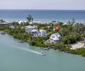 • Down here the island is narrow: you live right on the water near Blind Pass (the bridge from Sanibel onto Captiva), and beach access is directly across the street.