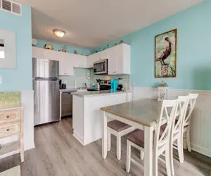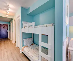 Perched on the third floor with sweeping ocean views, this beautiful one‑bedroom, one‑bathroom condo offers a serene and comfortable retreat for up to six guests. The master bedroom features a plush king‑size bed. In the hallway you’ll find a built‑in alcove with dedicated bunk beds—perfect for kids or extra guests—and the living room offers a sleeper sofa for added flexibility.
