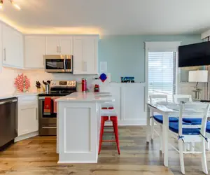 Escape to serene beachside living in this elegant oceanfront 1‑bedroom, 1‑bathroom condo on the 5th floor, designed for two guests who desire comfort, style, and proximity to the sea. The master bedroom is appointed with a luxurious king‑size bed, offering a peaceful haven to rest after a day in the sun. The bathroom features a modern walk‑in shower, adding a touch of spa‑like convenience to your stay.