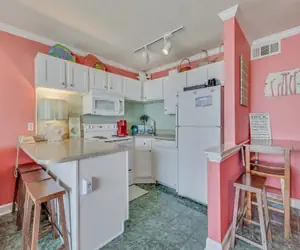 Experience beach‑front living on the 5th floor of this gorgeous ocean‑front 1‑bedroom, 1‑bathroom condo, perfectly suited for up to five guests. The master bedroom is furnished with a king‑size bed for you to unwind in comfort, and just off the hallway you’ll find a built‑in alcove with a twin bed—ideal for a child or extra guest—to share the space while preserving a bit of separation. In the living area, a sleeper sofa offers flexible sleeping space while still providing a full, comfortable seating zone.