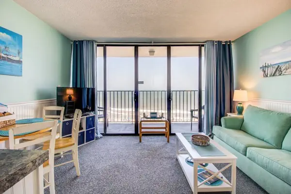 Step into beachside elegance with this oceanfront one‑bedroom, one‑bathroom condo on the 5th floor, perfectly designed for a small family or couple seeking comfort and coastal charm. The master bedroom features a luxurious king‑size bed that invites you to unwind after a day by the sea. The living room includes a sleeper sofa, so when friends or an extra guest join, you’ll all have cozy places to rest.