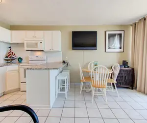 Perched on the 6th floor with stunning ocean‐front views, this comfortable and inviting 1‑bedroom, 1‑bathroom condo is perfectly suited for couples or family of up to six guests. Enter the master bedroom to find a plush king‑size bed designed for relaxation. Down the hallway, a built‑in alcove with bunk beds adds fun (and extra sleep space) for kids or additional guests, and the living room includes a comfortable sleeper sofa, giving everyone the option to spread out and feel at home.