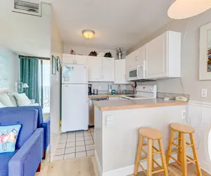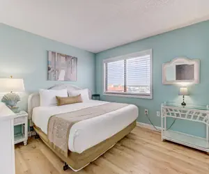Elevated high on the 8th floor with sweeping ocean views, this beautifully furnished ocean‑front 1‑bedroom, 1‑bathroom condo offers a comfortable and stylish escape for up to four guests. The master bedroom features a luxurious king‑size bed, ensuring restful nights as you listen to the gentle rhythm of the waves below. Just off the hallway, a built‑in bunk‑bed alcove provides extra sleeping space, perfect for kids or additional guests who want their own cozy nook.