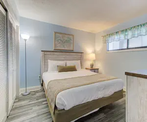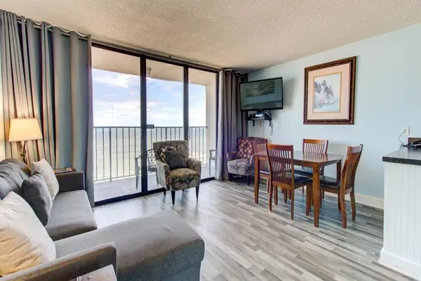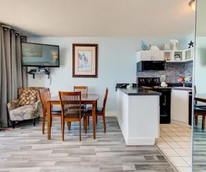 Situated on the 8th floor with expansive views of the sea, this ocean‑front 1 bedroom, 1 bathroom condo offers an ideal blend of space, comfort and coastal living for up to six guests. The master bedroom is furnished with a luxurious king‑size bed, providing a serene retreat after your day by the water. Just off the hallway, you’ll find a built‑in bunk‑bed alcove—perfect for kids or extra guests who need their own little nook. The living room includes a sleeper sofa, giving you two additional sleeping spots without sacrificing living space.