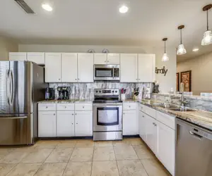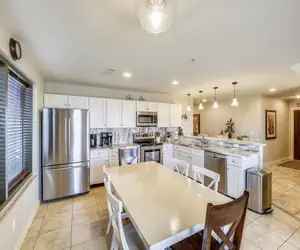 Upon entering, you will notice the open concept layout that makes the condo feel spacious and airy. Enjoy your morning coffee on the balcony, and host a movie night in the cozy living room! This condo will accommodate up to eight people, making it an excellent choice for your next vacation. Enjoy a fully-equipped kitchen with stainless steel appliances. This kitchen is sure to meet your needs to spark up those excellent family meals. This kitchen bar seats three comfortably.