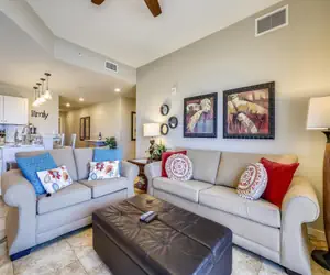 Not only is this room impressive, but it has more than enough amenities for fun and relaxation. This resort includes an outdoor pool, hot tub, coffee shop, and many restaurants that are walking distance from the room. This unique condo has a spacious balcony with access to the grilling area as well as the walkway to the pool and hot tub area. Sit on the balcony and enjoy the unobstructed view of the sunset.