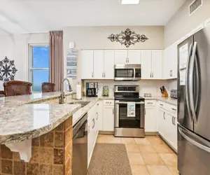Enjoy this professionally decorated retreat boasting high end tropical West Indies inspired furnishings offering a sophisticated island vibe. The fully-equipped gourmet kitchen is fitted with quartz counter-tops, bar seating and all of the necessary cookware for at home convenience. The furnished private wrap around balcony offers a spectacular view of the Gulf Coast. This magnificent CORNER unit will comfortably accommodate 8 guests.
