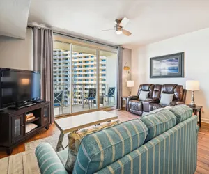 Check out Shores of Panama 726, a pristine and modern condo that offers the charm of a friend's beach house with the amenities and location of a five-star hotel. This spacious and cozy condo offers one bedroom and two bathrooms for up to six people people. Just because it has one 'bedroom', it doesn't mean there isn't enough space for a small group to spread out, make food, watch TV, play board games, and have a few drinks together in the evening.