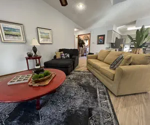 This beautiful large two bedroom, two bath condominium features a fully equipped kitchen, native stone fireplace, washer/dryer and deck with charcoal grill. There is a king bed in the master bedroom, two queens in the guest bedroom and a sleeper sofa in the living room. 3 TV's.