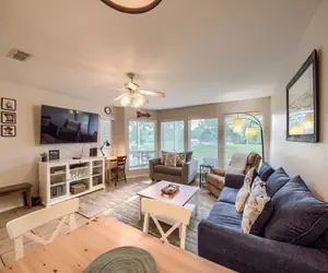 This beautiful 2/2 condo at Waterwheel Condominiums is on the Guadalupe River! It is on the ground floor, however there is one step into the door, so it is not wheelchair accessible. Walking distance to downtown New Braunfels and Schlitterbahn and only 3 miles to Gruene. This fully furnished condo comes with all the necessities for a great vacation!