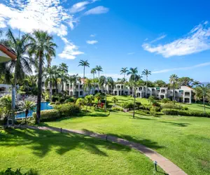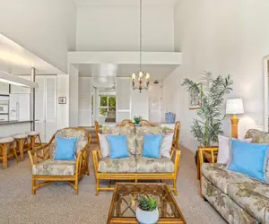 The Palms at Wailea is an architect-designed, two-story complex with charming Mediterranean accents and beautifully manicured grounds, including two lily ponds joined by a charming stream. Located above the pristine shores of Keawakapu Beach, this impeccably furnished home will provide comfort, luxury, and plenty of room to spread out while you explore and enjoy all that Maui has to offer. The spacious covered lanai with a dining table allows for relaxing evenings while you kick back and enjoy the views. Lounge poolside in the afternoon and then relax in the Jacuzzi after the sun sets and take in the beauty of the brilliant Maui sunset skies.